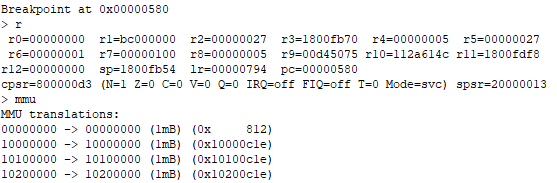 vectors[12] = (uint32_t)data_handler; // The one we care aboutAnd map it to 0xFFFF0000 . I also enable high vectors, so the ARM CPU knows to jump to my vectors instead of BootROM's:
